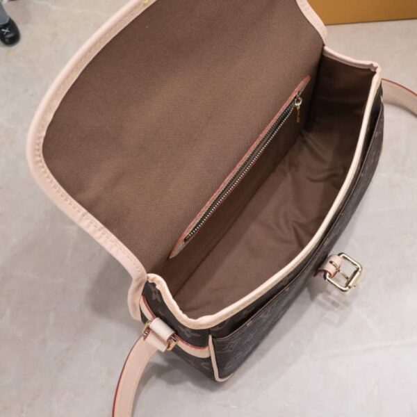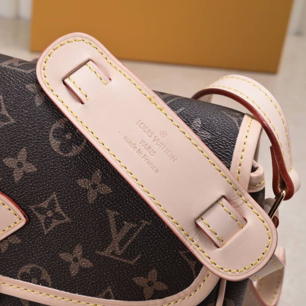 The Louis Vuitton Monogram Canvas Sologne in Brown is a timeless crossbody bag with a vintage charm. Featuring the classic monogram canvas with natural leather trim, it offers both elegance and durability. Its structured flap design and practical size make it perfect for everyday wear.