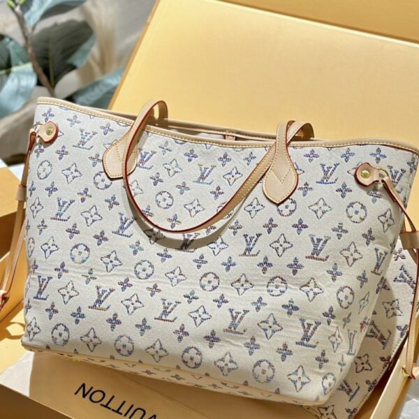 Louis Vuitton Neverfull MM Monogram Jacquard Fabric Multicolor Beige