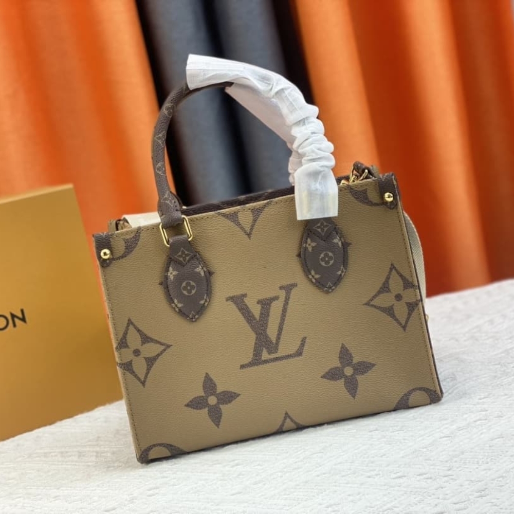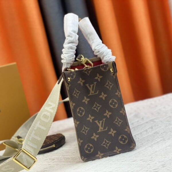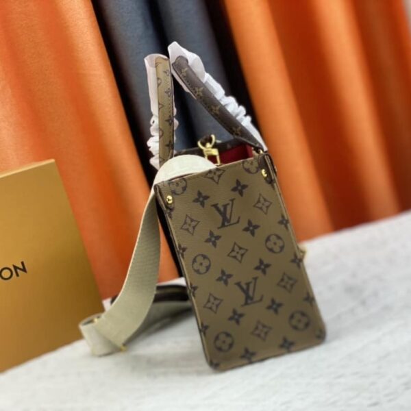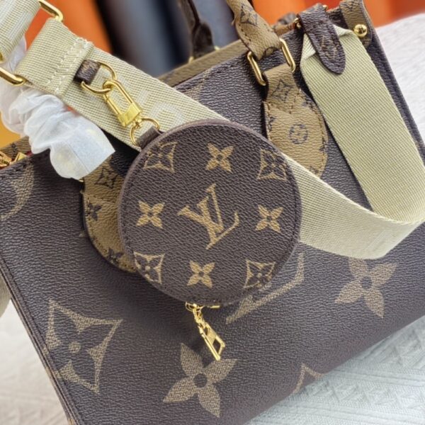 Both fashionable and functional, this OnTheGo PM tote is an ideal everyday companion. Made from a mix of Monogram and Monogram Reverse canvas with the on-trend Giant pattern, it is fitted with Toron handles and a signature woven jacquard strap in contrasting crème beige. The detachable coin purse is perfect for storing change or tiny treasures.