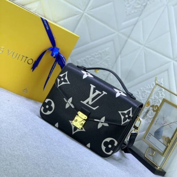 For Spring 2021, the Pochette Metis was fashioned from Monogram Empreinte leather with the embossed large Monogram pattern in a contrasting color. Accented with the emblematic S-lock found on the House’s historic trunks, this compact bag features a stylish top handle and a removable strap for shoulder or cross-body wear.