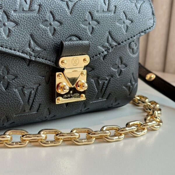Made from embossed Monogram Empreinte leather, the Pochette Métis handbag blends signature House style and contemporary detailing. The on-trend East-West silhouette is highlighted by a heritage S-lock and removable short chain, both cast from gold-finish metal. With its well-organized interior and adjustable smart strap, this compact bag adapts perfectly to active lifestyles.