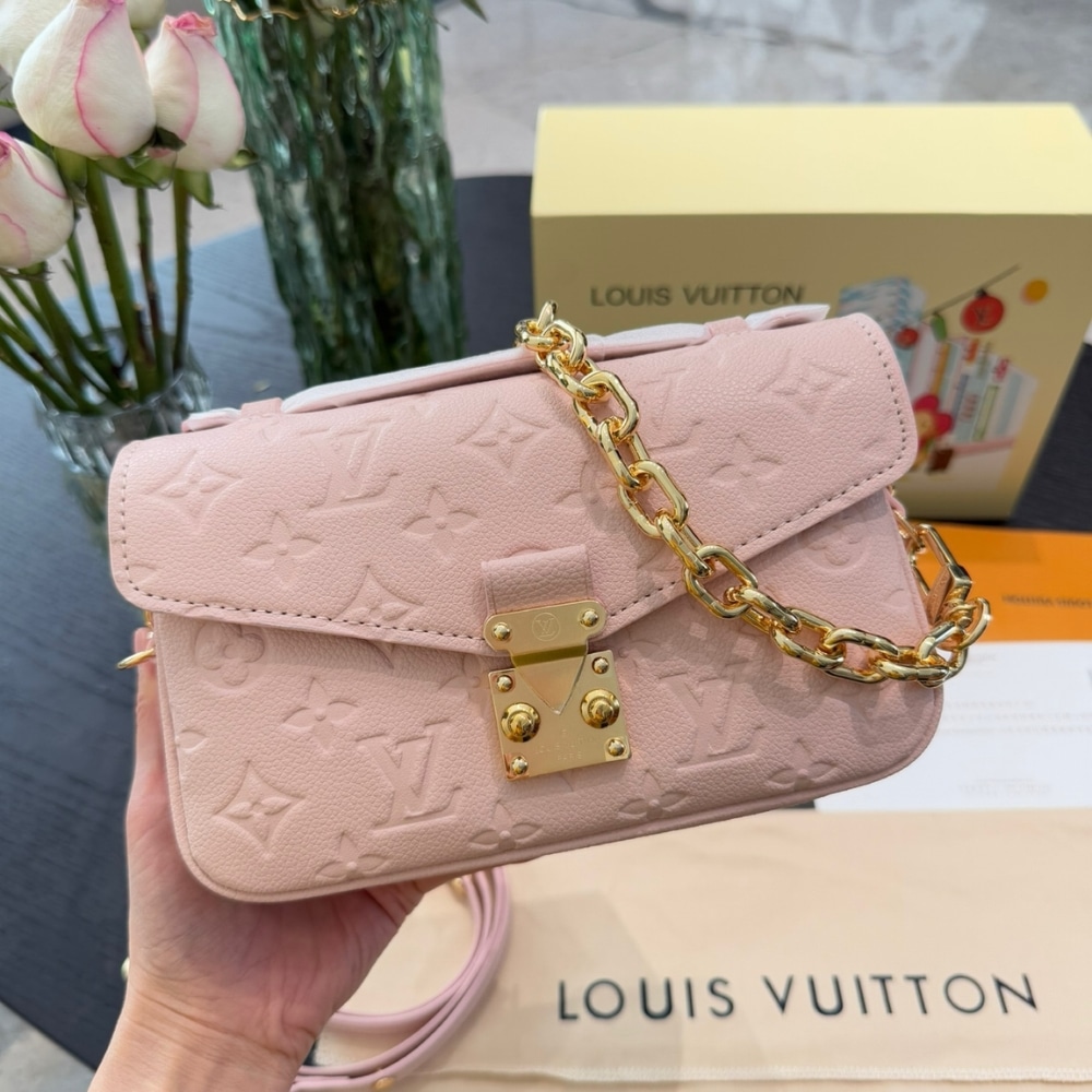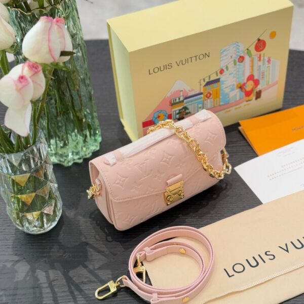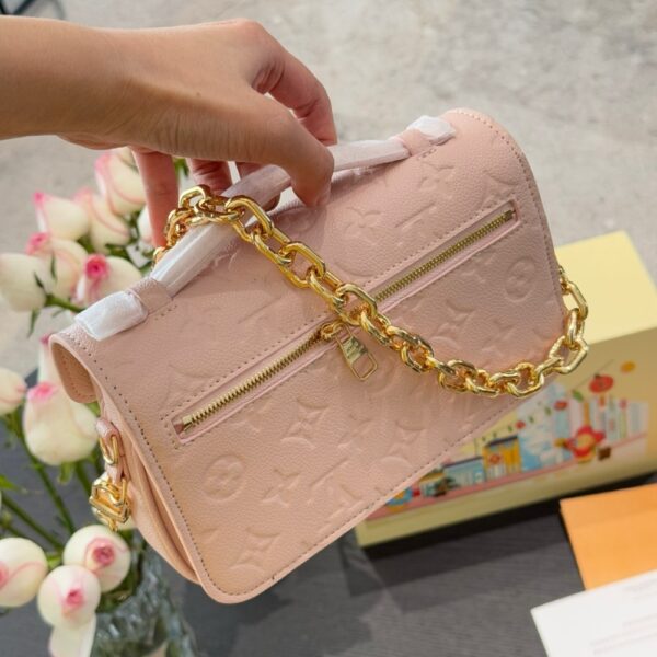 Inspired by the classic Satchel, the Pochette Métis bag attracts attention with its bright cream Monogram Empreinte material, combined with a Microfiber lining in the same tone. The design looks more impressive with a delicate embossed Monogram pattern on the leather background, dotted with shiny gold metal details such as the trendy S-lock.