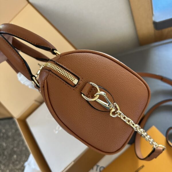 An elegant brown brings a traditional leather goods feel to this Speedy Bandoulière 25 handbag in Monogram-embossed leather. The bag’s iconic shape is perfectly complemented by the timeless color of the leather. The Speedy can be carried by its two rolled-leather top handles or the removable and adjustable leather strap.