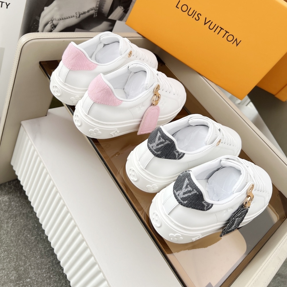 The Louis Vuitton Time Out Sneaker Grey redefines casual elegance with its sleek design and refined detailing, embodying the Maison’s iconic sophistication. With every step, it exudes effortless comfort and a modern aura of prestige, making it a statement piece for the luxury connoisseur.