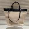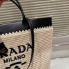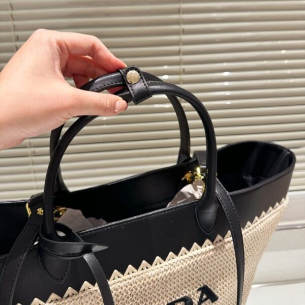 The Prada Crochet and Leather Tote in tan and black embodies timeless elegance with a modern, effortless charm. Its bold silhouette and refined detailing make it the perfect statement piece, elevating everyday style into a symbol of prestige and sophistication.