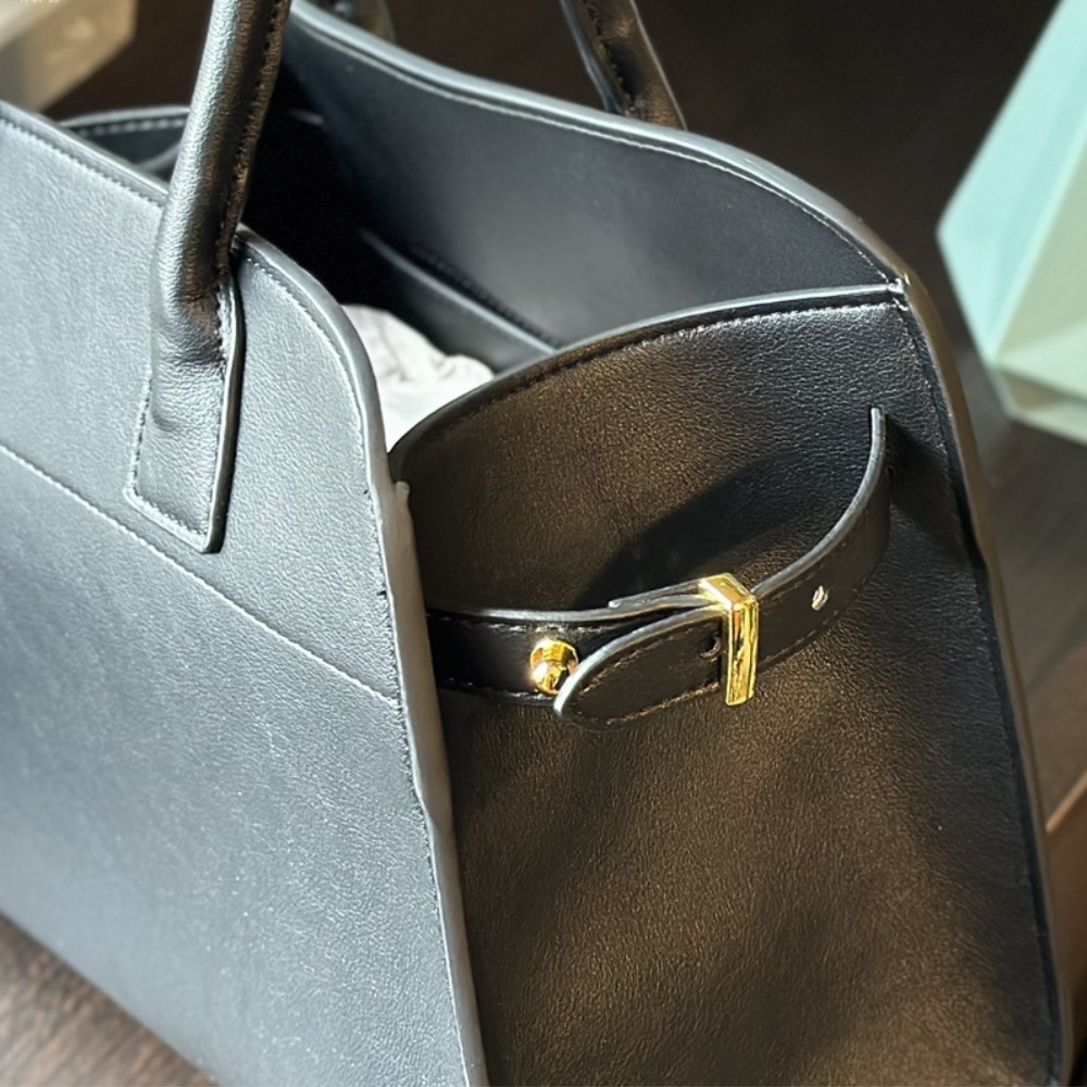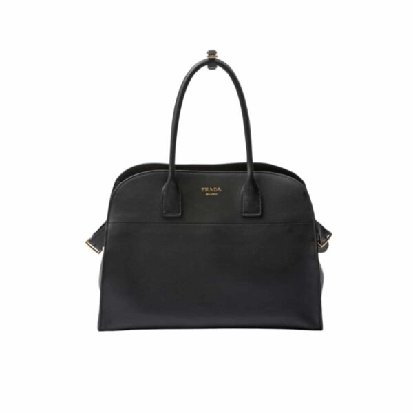 The Prada Large Tote Bag with Buckles in black embodies understated sophistication with a commanding silhouette designed for both elegance and versatility. Its refined lines and timeless structure exude prestige, making it the perfect statement piece for the modern luxury connoisseur.