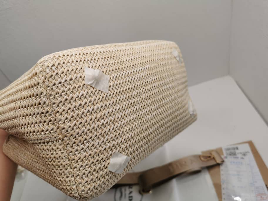 Prada Raffia Tote Bag In Beige