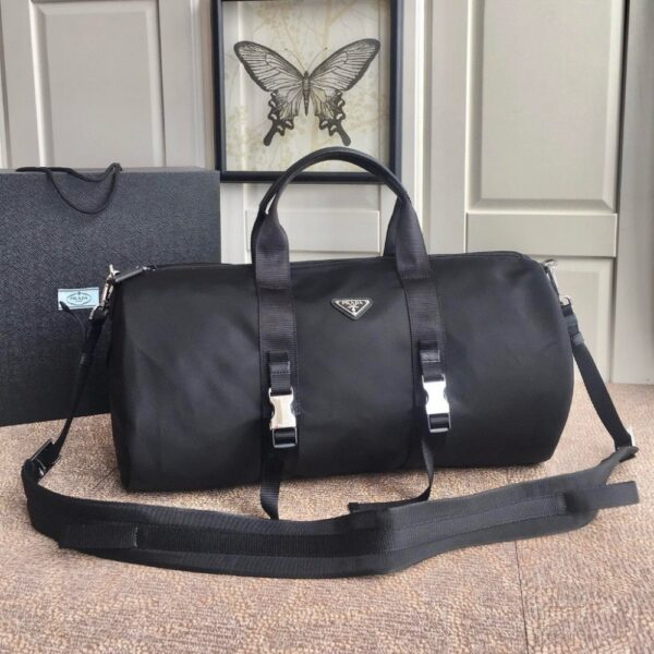 The Prada Re Nylon and Saffiano Duffle Bag redefines travel luxury with its sleek silhouette and impeccably structured design. A statement of modern refinement, it exudes effortless sophistication and affirms the prestige of those who carry it.