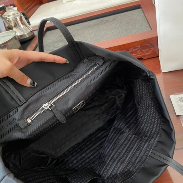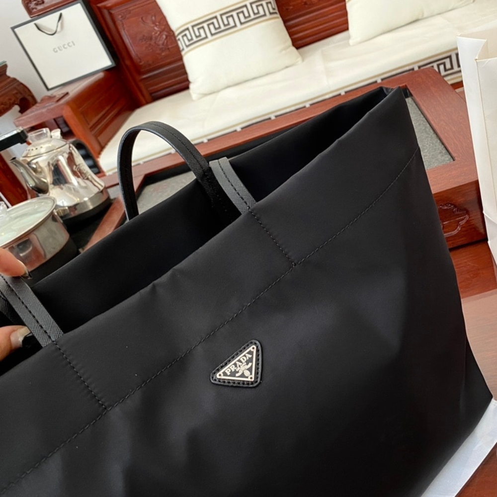The Prada Re-Nylon and Saffiano Tote in black embodies timeless sophistication with its sleek, minimalist design and graceful proportions. Effortlessly elegant and unmistakably iconic, it conveys refined confidence and modern prestige in every detail.