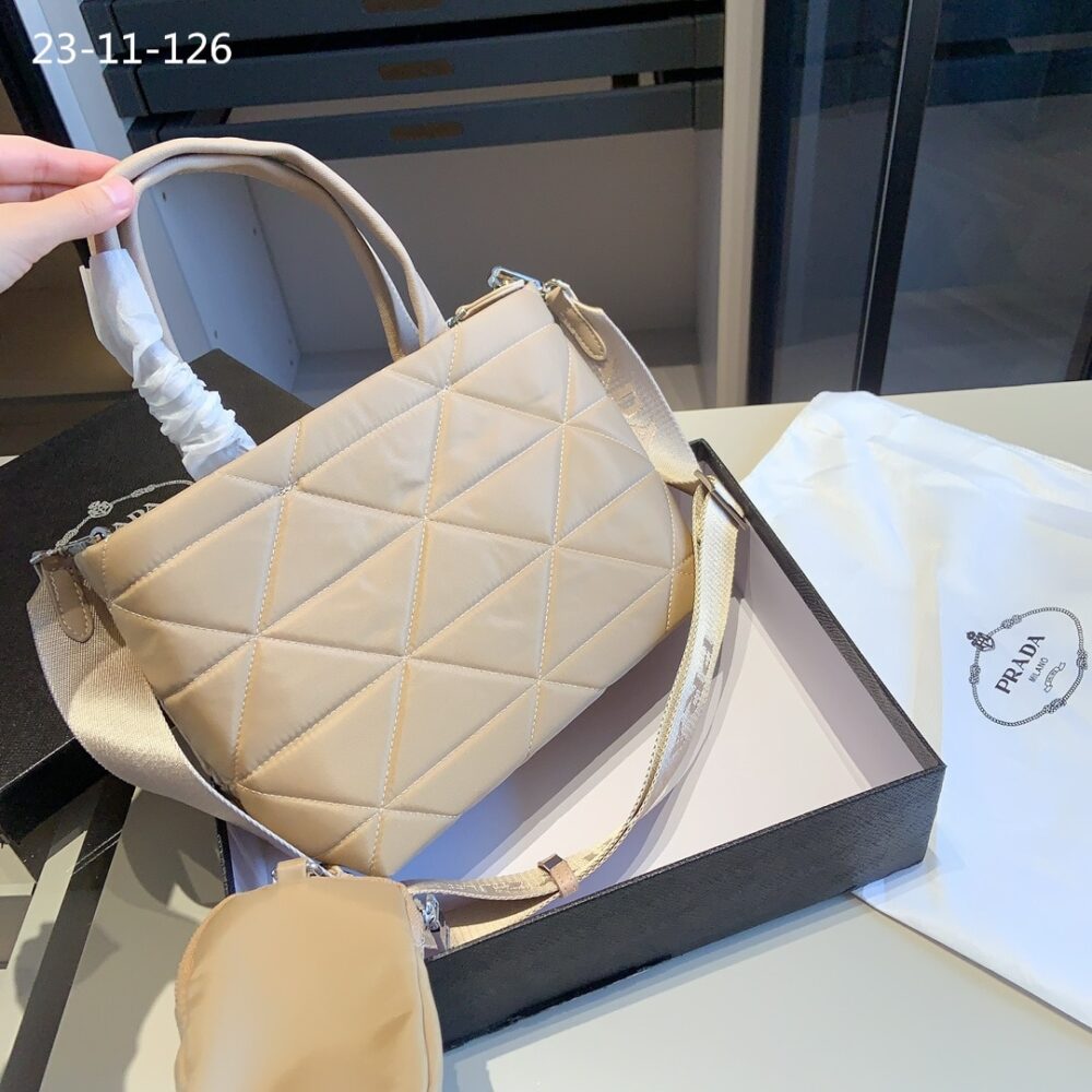 Prada Re Nylon Padded Tote Bag Beige