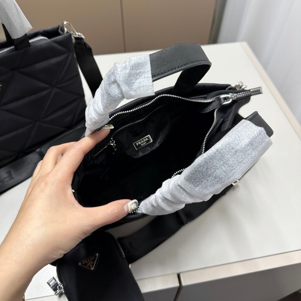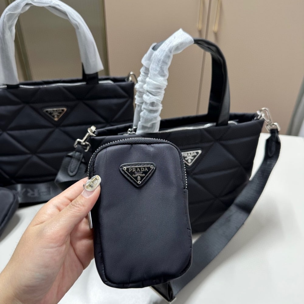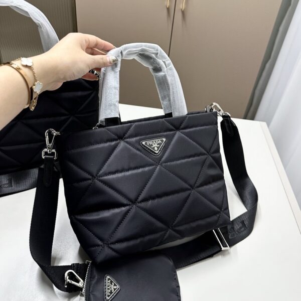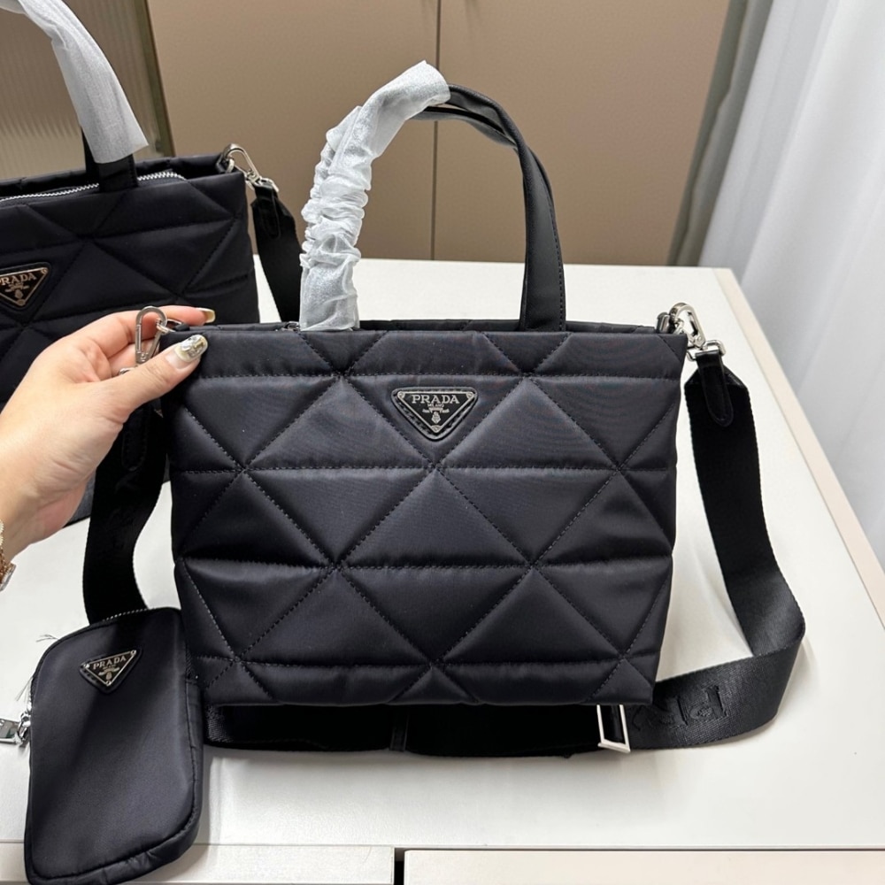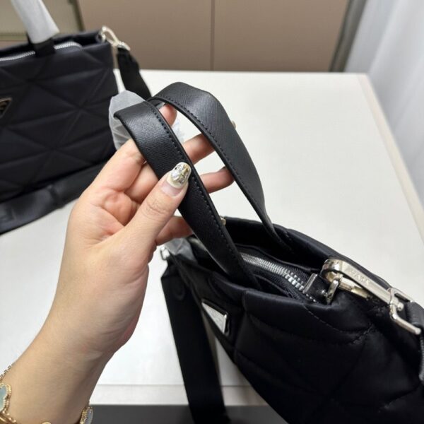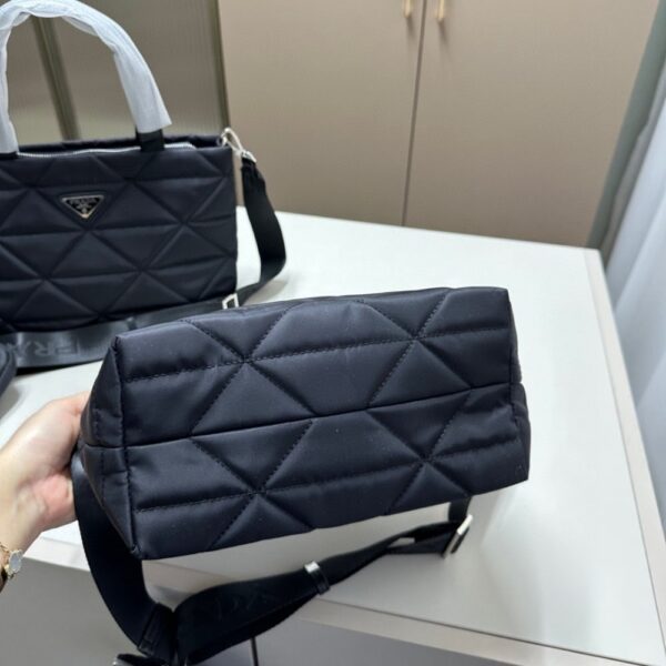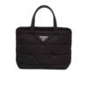 The Prada Re Nylon Padded Tote in black exudes timeless sophistication with its sleek quilted design and refined silhouette. A perfect harmony of elegance and modern allure, it radiates confidence and elevates every look with effortless luxury.