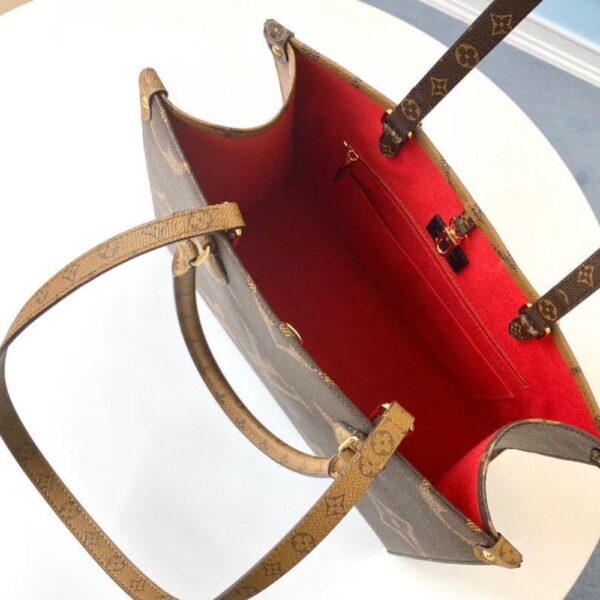 The name says it all: OnTheGo MM takes care of business or shopping, with plenty of room for a busy woman’s essentials. With Giant Monogram canvas on one side and Monogram Reverse on the other, it is virtually two bags in one. Twin Toron top handles and two shoulder straps offer several different carry styles, for extra versatility.