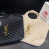 Crafted from beige leather, the Saint Laurent Maxi Icare tote is defined by its oversized silhouette and diamond quilting. Featuring the iconic YSL monogram, this spacious carryall merges practicality with polished Parisian allure—an effortless companion for everyday luxury.