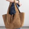 The Saint Laurent Le 5 À 7 Bea in Golden Leaf Suede offers a luxurious blend of bold color and elegant design. Crafted in high-quality suede, this oversized bag makes a statement with its spacious silhouette and iconic style. Perfect for day-to-night versatility, it adds a touch of vintage allure to any outfit.