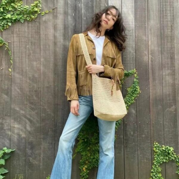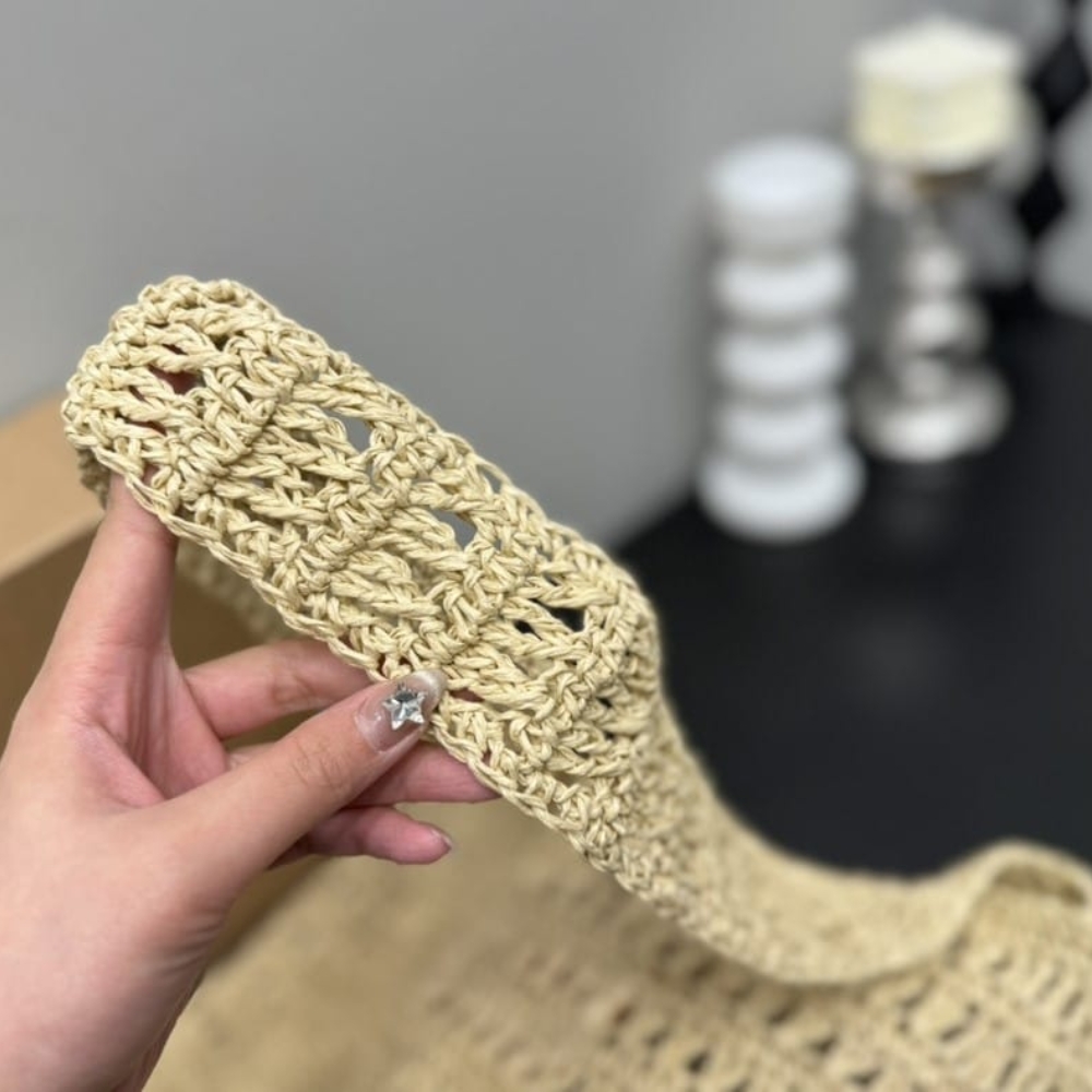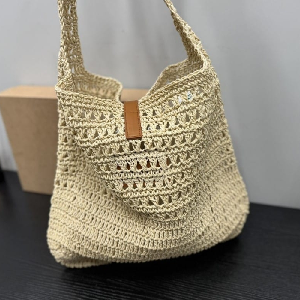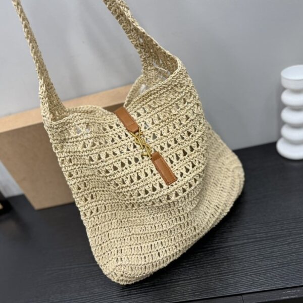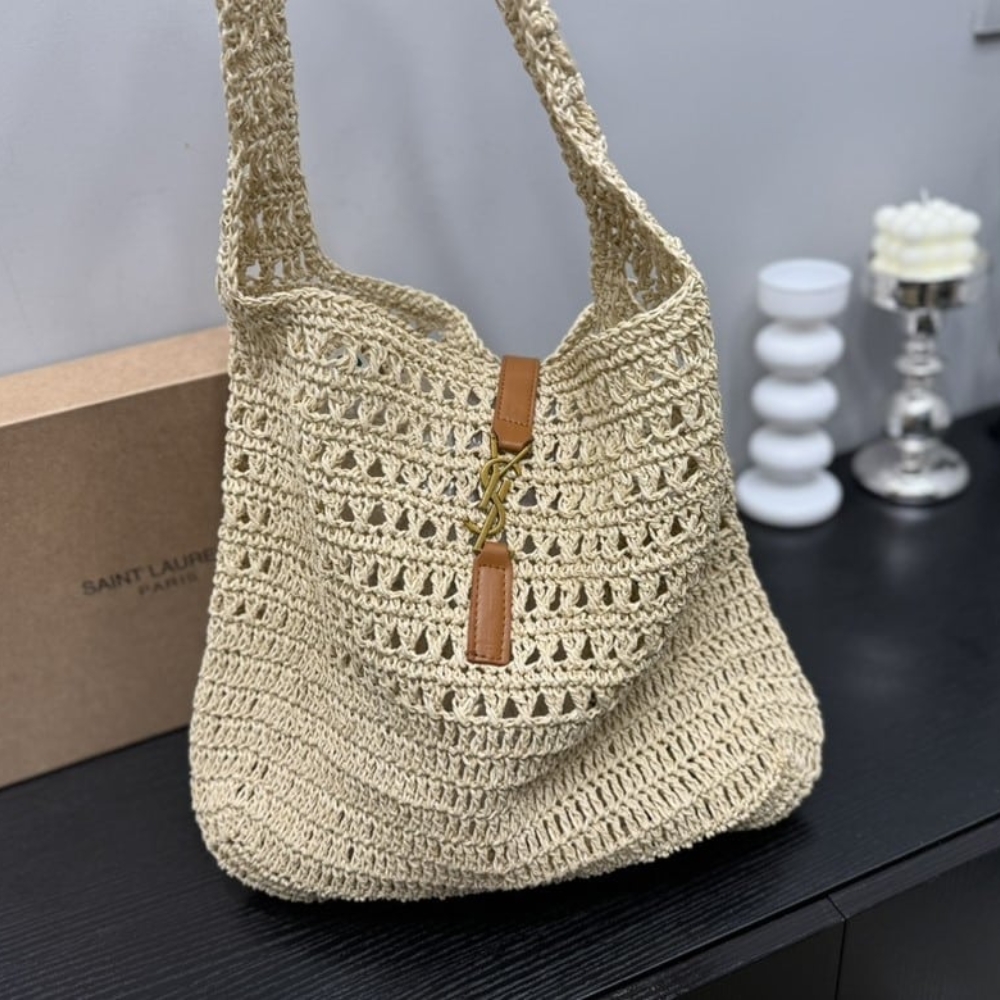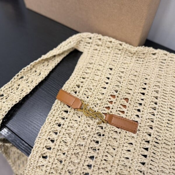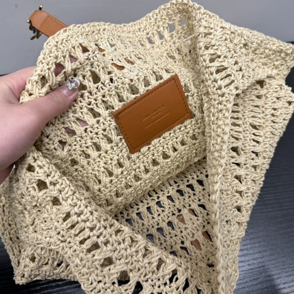 Saint Laurent Le 5 À 7 In Raffia Crochet Beige