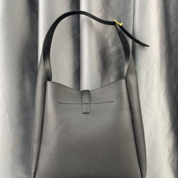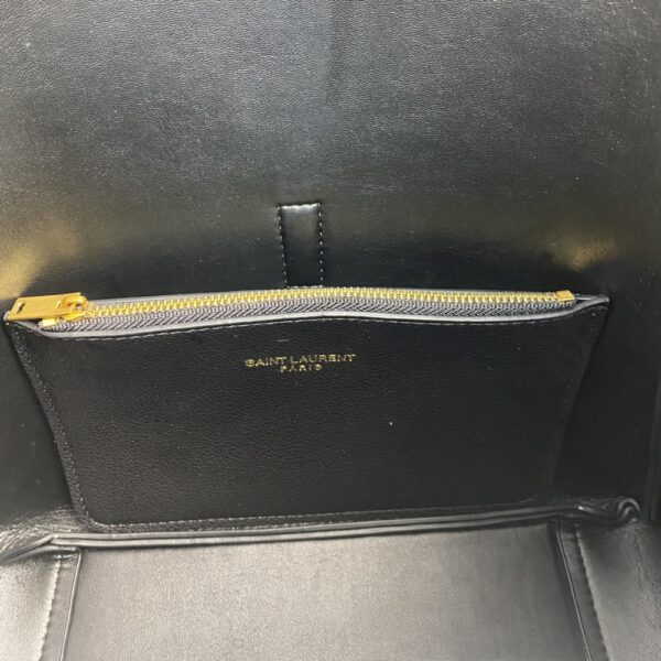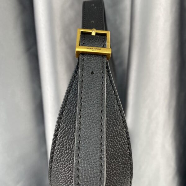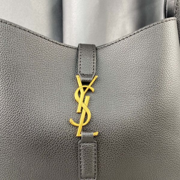 Open top with foldover leather strap with gold-tone cassandre hardware, single main compartment and one interior slip and zipper pockets. Drape yourself in the effortless grandeur of this Saint Laurent masterpiece, a generously proportioned hobo whose fluid lines and iconic YSL emblem exude sophisticated nonchalance.