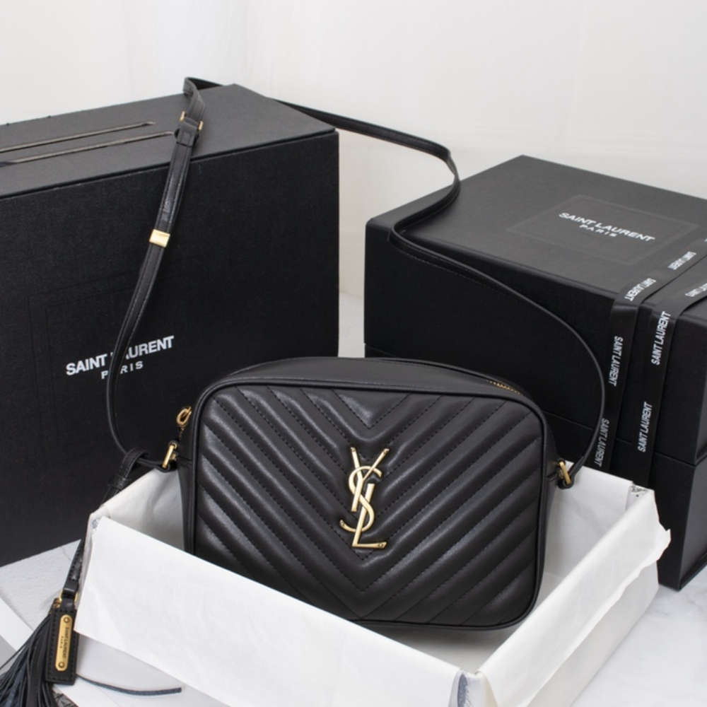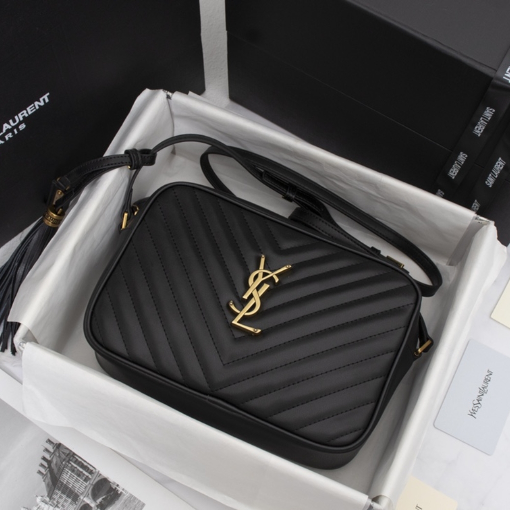 Saint Laurent Lou Camera Bag In Quilted Black Gold