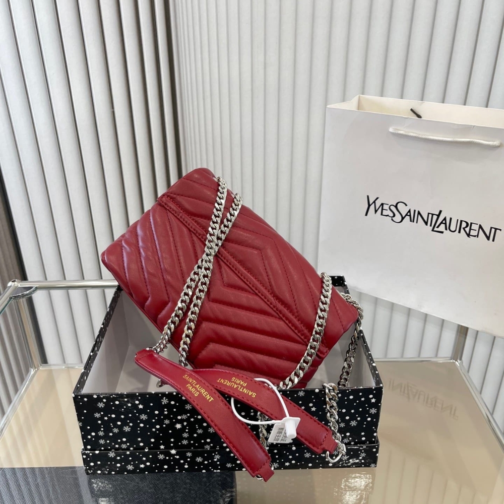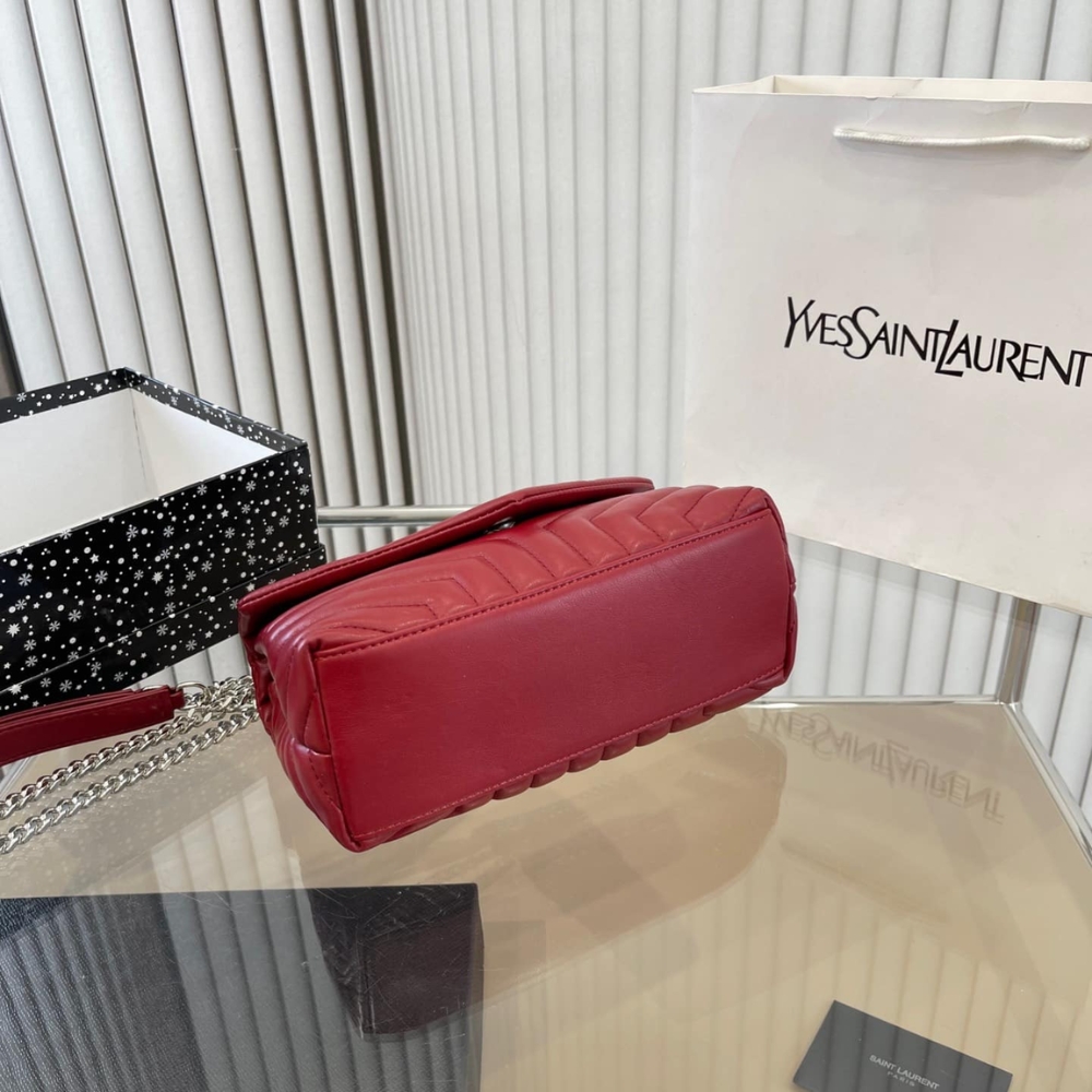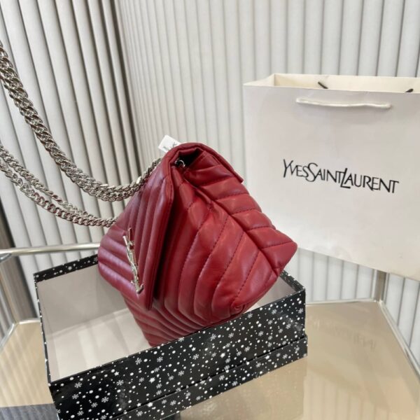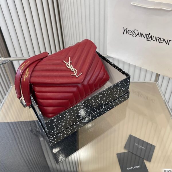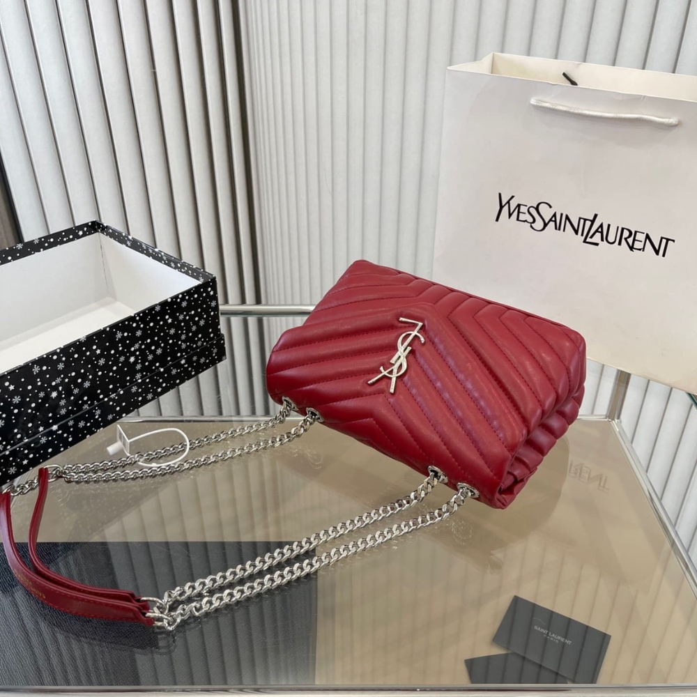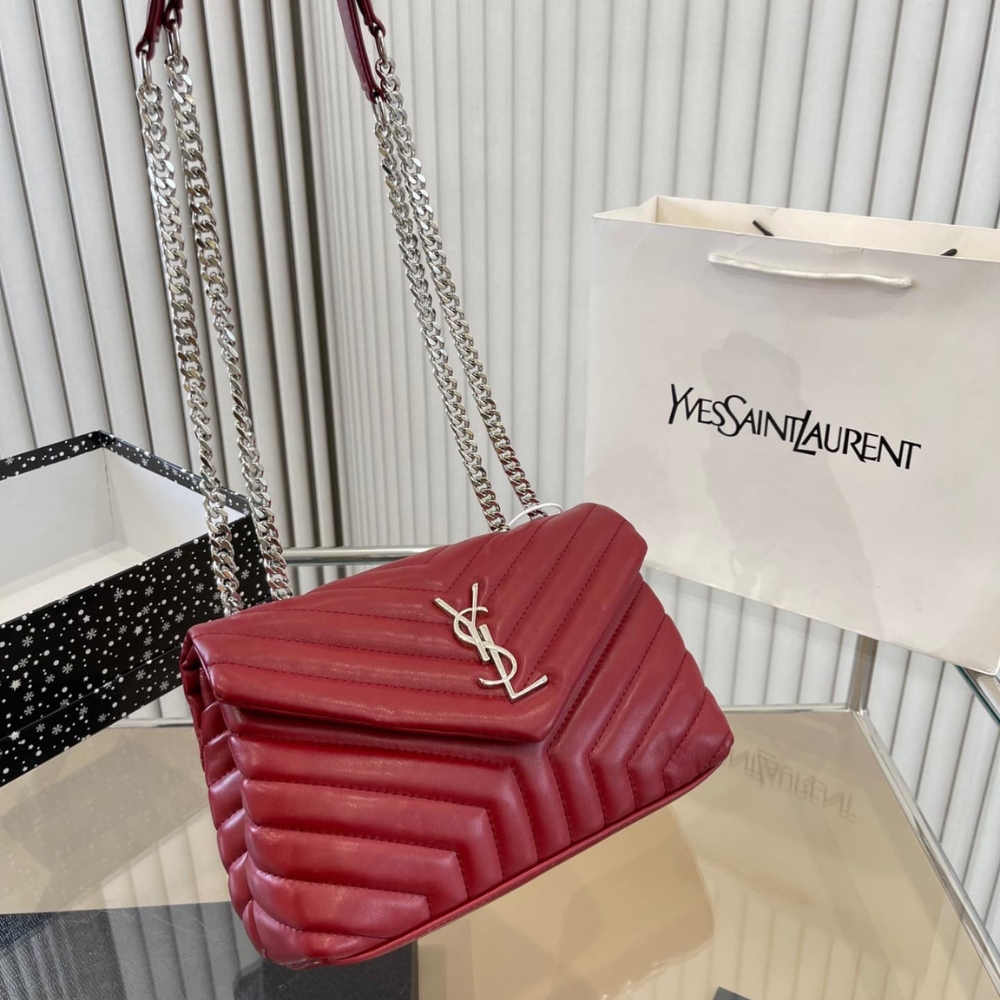 The Saint Laurent LouLou Shoulder Bag in red quilted leather is a bold statement piece with a refined edge. Its spacious interior makes it as practical as it is stylish, perfect for both day and evening looks.