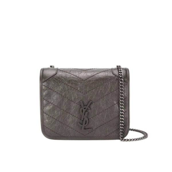 The Bag Saint Laurent Niki Vintage, It features a chevron-quilted design, tonal YSL monogram on the front, and a sliding chain strap with leather shoulder support. Elegant and edgy, it’s perfect for day-to-night wear.