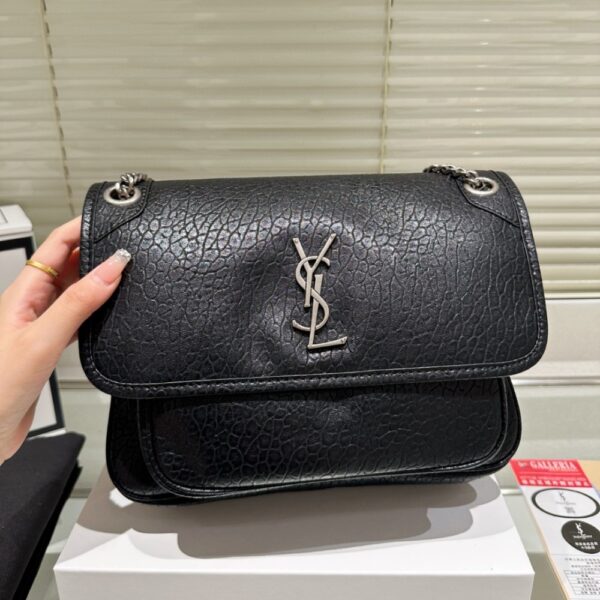 The Bag Saint Laurent Niki Vintage Medium Bag, with front flap and the Cassandre, featuring a convertible leather-and-chain shoulder strap.