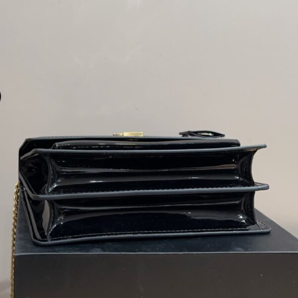 Luxury French fashion house Saint Laurent is famed across the globe for its exquisitely crafted handbags and accessories, each infused with the label’s own glamorous edge. This stunning black Sunset chain wallet has been constructed from patent leather, and features a gold-tone chain shoulder strap, accordion details at sides, a gold-tone logo plaque, a hanging leather tag and a foldover top.