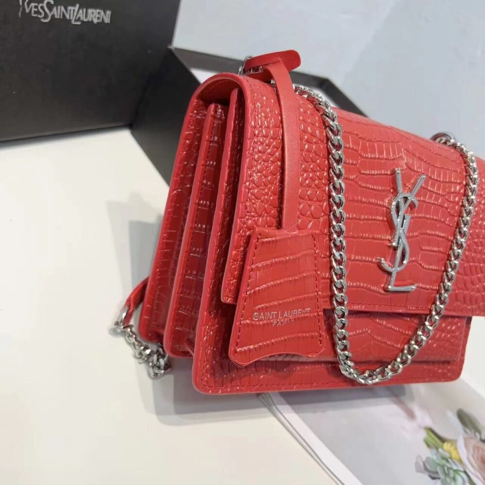 Saint Laurent Sunset Embossed Leather Bag Red